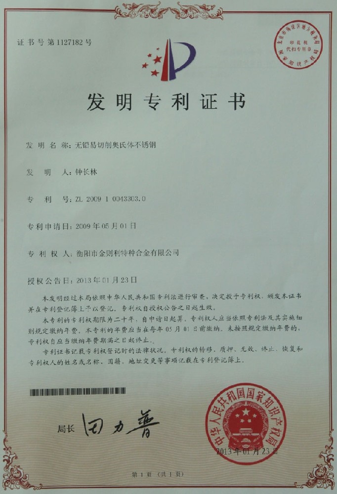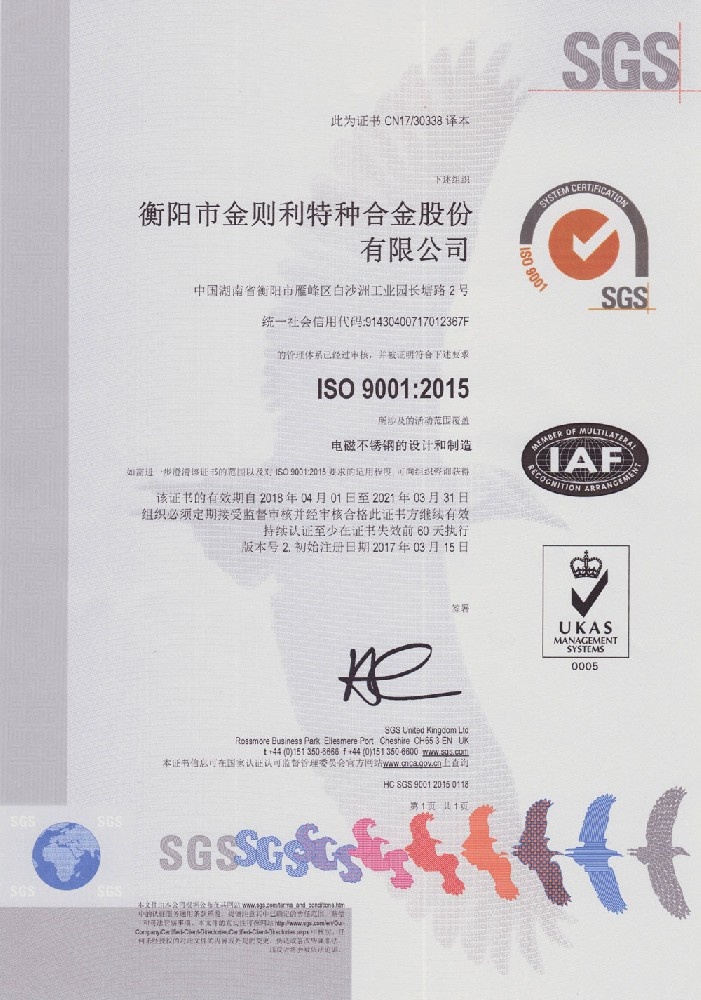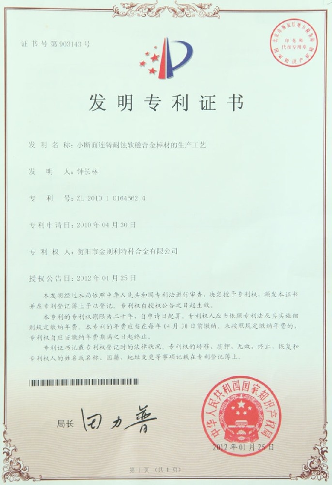 衡陽市金則利特種合金股份有限公司成立于一九九九年十二月,注冊資本人民幣兩千兩百萬元。注冊地址:衡陽市雁峰區(qū)白沙洲工業(yè)園長塘路2號。公司主營耐蝕軟磁合金,為湖南省高新技術企業(yè)。公司自成立以來,即致力于耐蝕軟磁合金的研發(fā)。 研制出的JL-31(00Cr13si2Pb)、JL-31B(00Cr13si2)、JL-31BS(00Cr13Si2S)、JL-37B(0Cr17Si2)、JL-37(0Cr17···